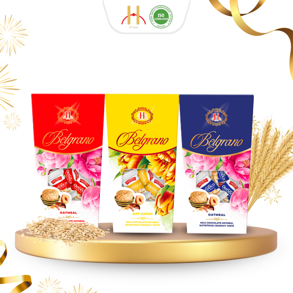 Dòng bánh yến mạch vị sữa, mỗi hộp bao gồm nhiều gói nhỏ gọn, tiện lợi